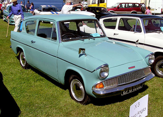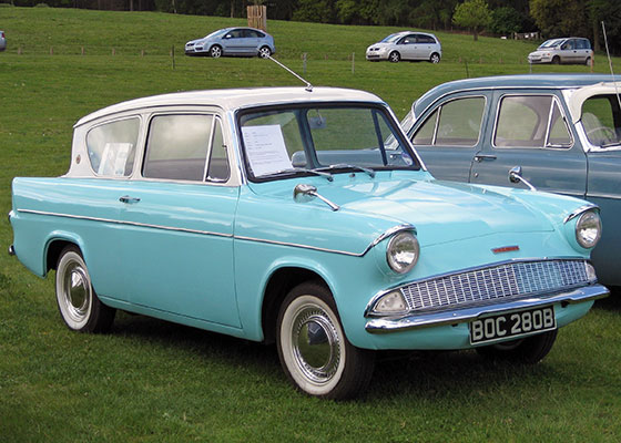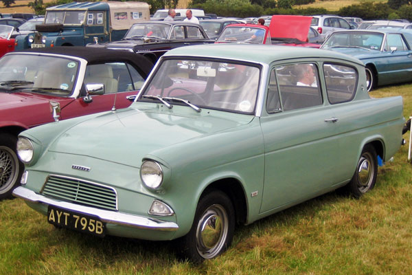 The Ford Anglia 105E was launched in 1959 as a 2-door 4-seater, small family saloon. It featured a new overhead valve four cylinder over-square engine which was very eager and free revving. The Anglia was available in either standard or Deluxe form with the latter featuring a full width front grill and better interior trim. The most striking feature of the new Anglia was the reverse rake rear windscreen which was incorporated into the design to improve headroom for rear passengers and aid visibility in wet weather. An estate version of the Anglia joined the range in 1961 and this was also available in standard or Deluxe specification. In 1962 the Anglia Super was launched with a 1198cc engine, larger drum brakes and an all synchromesh gearbox. The Anglia proved to be very successful both in motor sport, and with the buying public. Just over one million Anglias were made before production ended in 1968 with the arrival of the new Escort.
