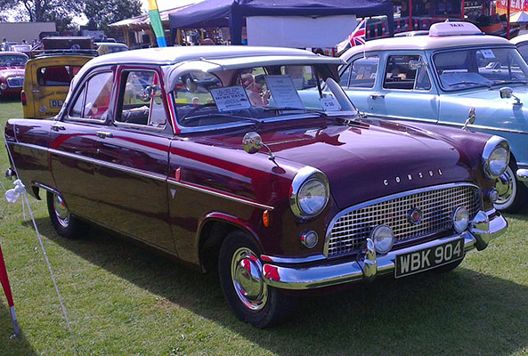 The Ford Consul Mk 2 was introduced in 1956 along with the Mk 2 version of its bigger 6 cylinder brothers the Zephyr and Zodiac. The Mk 2 Consul engine was the 4 cylinder unit from the Mk 1 but with an increase in capacity from 1508cc to 1703cc. Apart from the saloon model the Consul Mk 2 was also available as a convertible, or as an estate. These estates were in actual fact saloons that had been converted by the coachbuilding firm Abbott of Farnham. In 1957 a Consul De Luxe was introduced with improved interior trim, and in 1959 there were some styling changes which included a lower roof line. The Consul became known as the Consul 375 in 1961 to distinguish it form Fords new (but totally unrelated) Consul Classic. Ford ended production of the Mk 2 Consul in 1962.