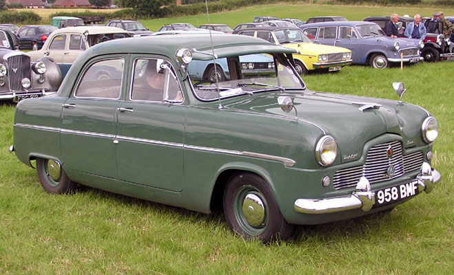 The Ford Zephyr was launched at he 1950 Earls Court motor show (along with its smaller brother the Ford Consul). The Zephyr went into production in January 1951, with the higher specification Zodiac following in 1953. Overdrive became an optional extra in 1955. Both cars featured an all new engine design and were also the first Fords (along with the Consul) to feature MacPherson Strut front suspension. Convertible versions were produced by Carbodies of Coventry from 1953, with an estate version being produced by Abbott of Farnham. Production of all models ended in February 1956 with the introduction of the Mk II.