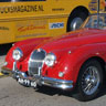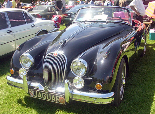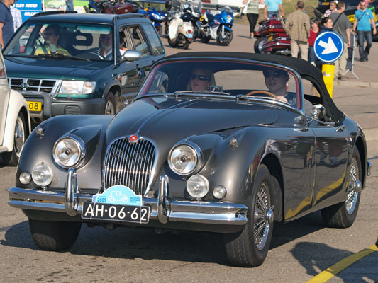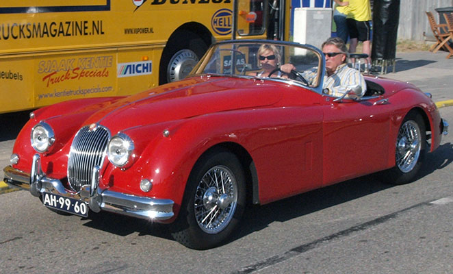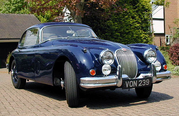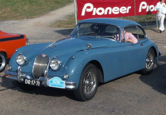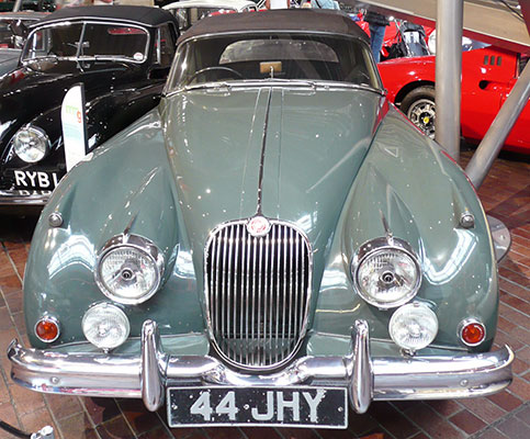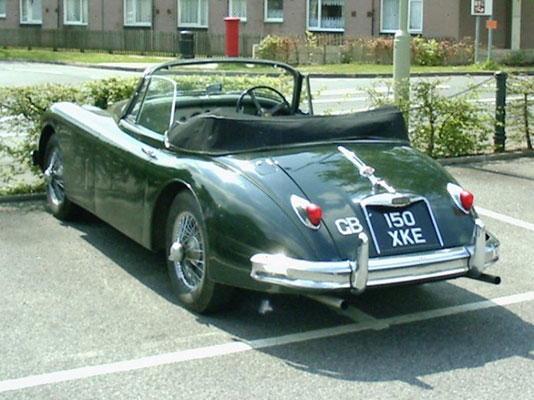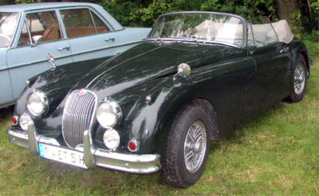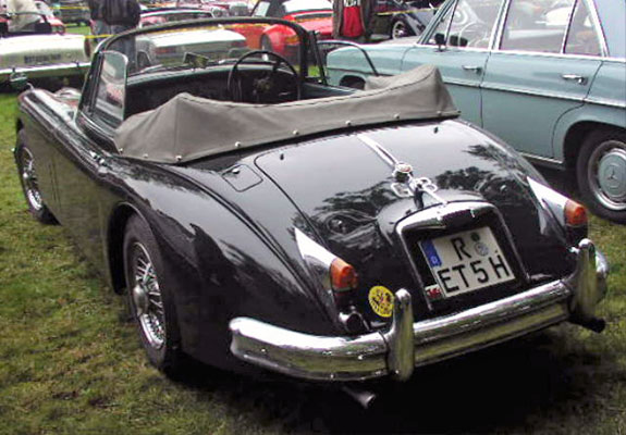 The Jaguar XK150 was introduced in May 1957 in Fixed Head Coupe and Drophead Coupe form replacing the XK140 range. The Roadster version came along in March 1958. All cars used the XK140 chassis but this time the bodywork was of a much more modern appearance and for the first time featured a one piece curved windscreen. Inside the vehicle the walnut veneer on the dashboard and door cappings had been replaced with padded leather trim. Mechanically one of the main changes to the XK150 were the Dunlop disc brakes which were used both front and rear as opposed to drums which were fitted to the XK140. The engine however was from the 140, and as before was available in standard tune, or in a higher performance version on the Special Equipment models. The Standard model had the 190 bhp of the earlier car but this time for the "SE" or S as it became known, power was up to a heady 250 bhp. This was achieved mainly by a new design of cylinder head (which became known as the straight port cylinder head) and triple two inch S.U. carburettors. Overdrive which had been optional also became standard fitment in 1958. In 1959 a 3.8 litre engine became available with 220 bhp in standard form and 265 bhp in the "S" versions. Production of all models ended in October 1960.