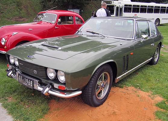 The Jensen FF was launched at the 1966 Earls Court motor show at the same time as the Interceptor. Although both models were similar in appearance to each other, there were significant differences between them with a lot of the bodywork being unique to each car. The FF front wings were longer and had double air vents fitted to them (as opposed to the Interceptors one), and the FF bonnet had an air scoop incorporated in it, but the main difference between the two cars was mechanical. The FF was a technically very advanced car for its day and was the first British car to feature permanent 4-wheel drive and anti-lock braking. Prior to being fitted to the FF anti-lock brakes had only been used on aircraft to enable them to stop more safely on shorter runways. The Maxaret system used on the FF was developed by Dunlop and used electronic sensors on the wheels to eliminate the brakes locking. Harry Ferguson, a tractor manufacturer developed the four-wheel drive system, and this is where the FF name originated - it stood for Ferguson Formula. Despite being voted car of the year in 1967 by Car magazine, the FF did not sell in great numbers partly due to the fact that it cost approximately 33% more than the interceptor and also export sales were low as it was only available as a right hand drive model due to the layout of four wheel drive transmission. Minor changes were made during the life of the car and production ended in 1971.