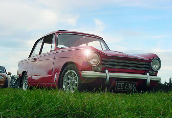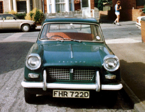 The very attractive Triumph Herald was launched in April 1959 and was to have a very successful 12 year production run. The bodywork had been designed by the Italian stylist Michelotti and the clean cut modern looks of this sporting four cylinder saloon actually hid very well the rather outdated means of construction. While most other manufacturers had by now adopted unitary construction, the Herald featured a separate chassis with bolt on bodywork. This was actually a blessing in many respects though, as repairs were much simplified by this arrangement, and the huge one piece forward hinged bonnet assembly gave completely unhindered access to the 948cc ex Standard Ten engine. Other aspects of the Herald were quite advanced, with light and precise rack and pinion steering (giving the car a remarkable 25ft turning circle) and independent rear suspension by means of a transverse leaf spring, and telescopic dampers all round - in fact this was the first mass produced British car to have all round independent suspension.