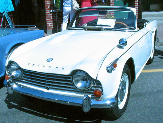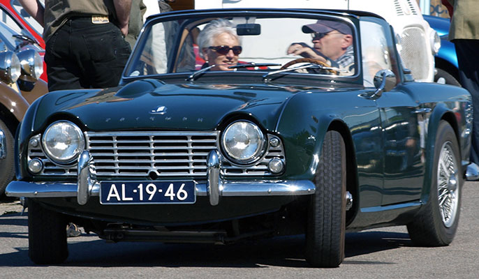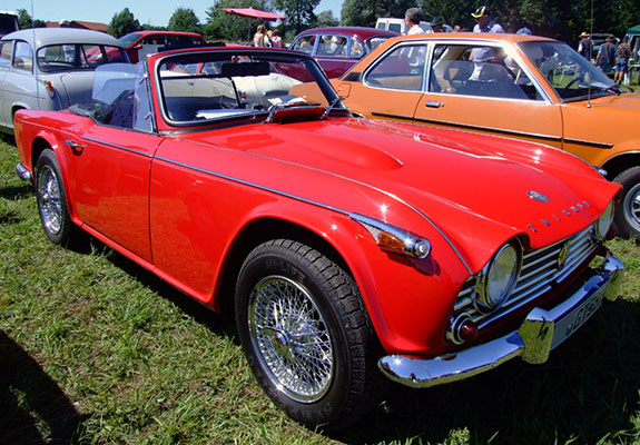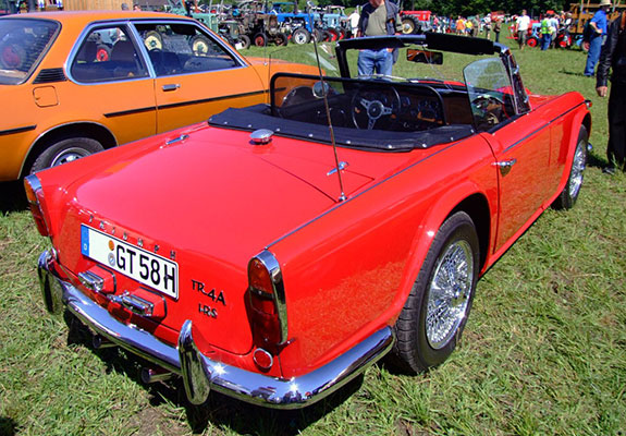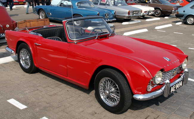 The Triumph TR4 was introduced in September 1961 to replace the TR3. It used a modified TR3A chassis and the 2138cc 4 cylinder engine that was previously available on the TR3A as an option. The bodywork however was completely new, having been designed by the Italian stylist Michelotti. This was the first TR to have wind-up windows and also included other benefits over its predecessors, such as face level ventilation in the dashboard and a larger boot compartment. A hardtop was available as an optional extra. The TR4A arrived in 1965 with a redesigned chassis that featured a new independent rear suspension arrangement to give the car a more comfortable ride. The TR4A also underwent some minor styling changes and a small increase in engine power to overcome the disadvantage of being slightly heavier than the TR4. A combined total of over 64000 TR4/4A models were built before production ended in August 1967. It was replaced by the TR5.